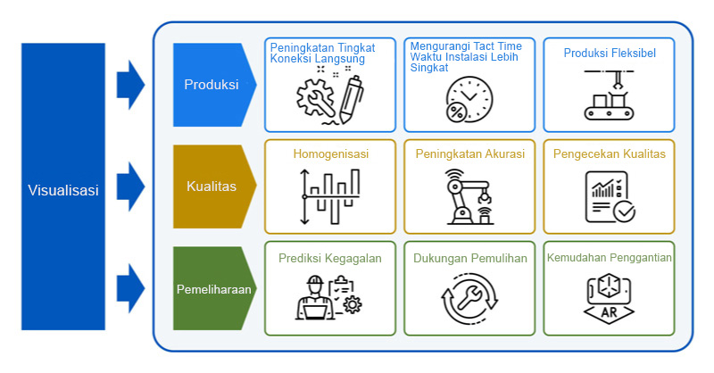 Dengan menggunakan data digital untuk mengelola jalur produksi otomatis, persiapan dapat dilakukan secara otomatis tanpa perlu adanya intervensi manual, sehingga memungkinkan produksi dengan variasi tinggi dan kuantitas variabel dari minimal satu unit.